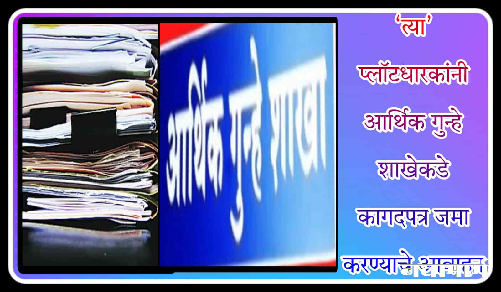 ‘त्या’ प्लॉटधारकांनी आर्थिक गुन्हे शाखेकडे कागदपत्र जमा करण्याचे आवाहन