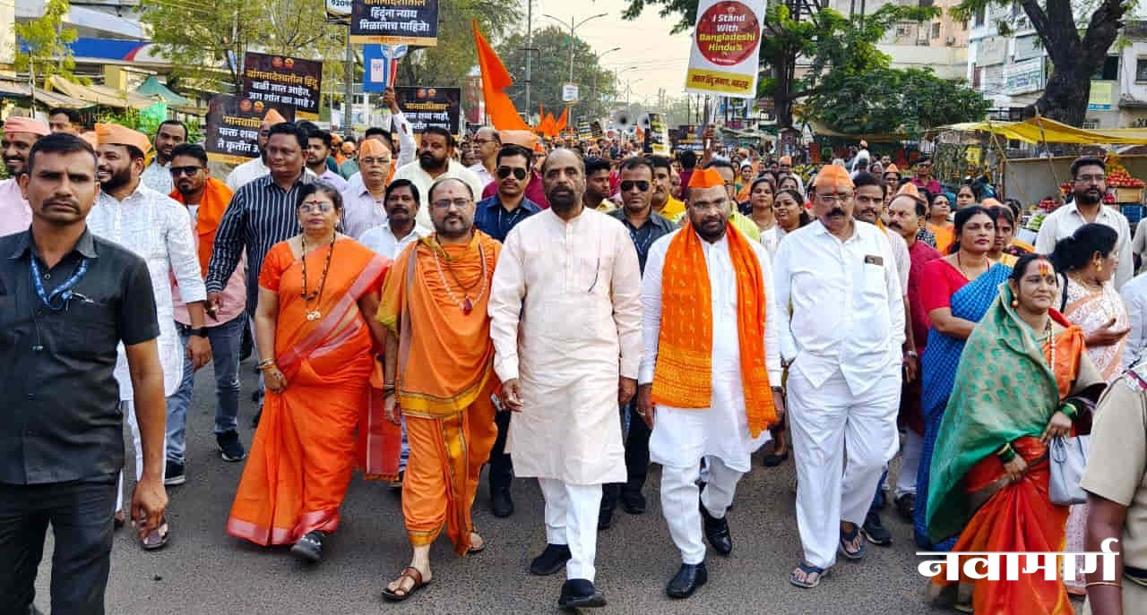 . बांगलादेश येथे हिंदू समाजातील नागरिकांवर होत असलेल्या हल्ल्यांच्या विरोधात आज चंद्रपूरात सकल हिंदू समाजाच्या वतीने बांगलादेश हिंदू न्याय यात्रा काढण्यात आली होती. यात भारतीय जनता पक्षाचे आमदार किशोर जोरगेवार यांनी सहभाग नोंदवत बांगलादेशातील घटनेचा निषेध केला. दुपारी तीन वाजता शहरातील गांधी चौक येथून या न्याय यात्रेला सुरुवात झाली. सदर यात्रा घोषणा देत शहराच्या मुख्य मार्गाने जिल्हाधिकारी कार्यालयावर धडकला. यावेळी जिल्हाधिकारी विनय गौडा यांना निवेदन देण्यात आले.