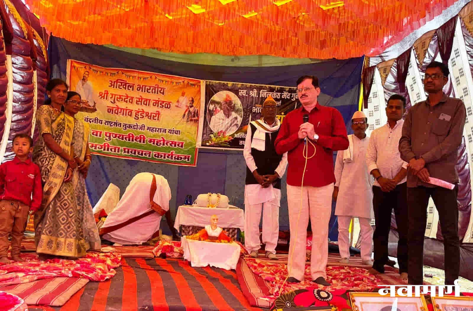 नागभीड : संतांनी दिलेली शिकवण यामुळेच संस्कृती व संस्कार टिकुन असुन ग्रामगीतेच्या माध्यमातुन परीसर स्वच्छतेसोबतच शरीर व मनही स्वच्छ होत असल्याचे प्रतिपादन माजी जि.प. सदस्य संजय गजपुरे यांनी नवेगाव हुंडेश्वरी येथील ब्रम्हलिन वंदनीय राष्ट्रसंत तुकडोजी महाराज पुण्यतिथी व ग्रामगीता प्रवचन महोत्सवात समारोपीय कार्यक्रमात बोलतांना केले.