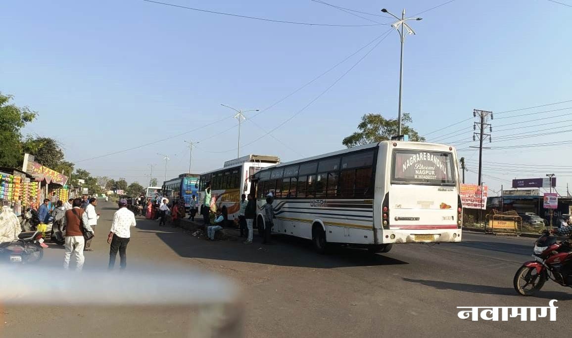 चंद्रपूर : चंद्रपूर नागपूर महामार्गांवरील वरोरा शहरातील रत्नमाला चौकात फार मोठी वर्दळ असते. या रत्नमाला चौकातूनच वरोरा ते चंद्रपूर, आणि वरोरा ते नागपूर जाणारे प्रवासी फार मोठ्या प्रमाणात आहे. यासाठी खाजगी ट्रॅव्हल्स धारकांची मोठी शर्यत पाहायला मिळतात. प्रवासी आपल्याच ट्रॅव्हल्स मध्ये बसला पाहिजे म्हणून तिकीट दरात सुद्धा कमी जास्त केल्या जात असल्याचा प्रकार ही इथे दिसून येत आहे. ऐन महामार्गांवर एका मागोमाग नागपूर जाणाऱ्या चार ट्रॅव्हल्स लाईन दोरीने उभ्या राहिल्याने समोरून येणारे वाहन दिसत नसल्याने या ठिकाणी मोठा अपघात होण्याची दाट शक्यता वर्तविल्या जात आहे. तर इतर वाहनानी जायचं कुठून साहेब. असं म्हणण्याची वेळ सामान्य प्रवासात बोलल्या जात आहे.