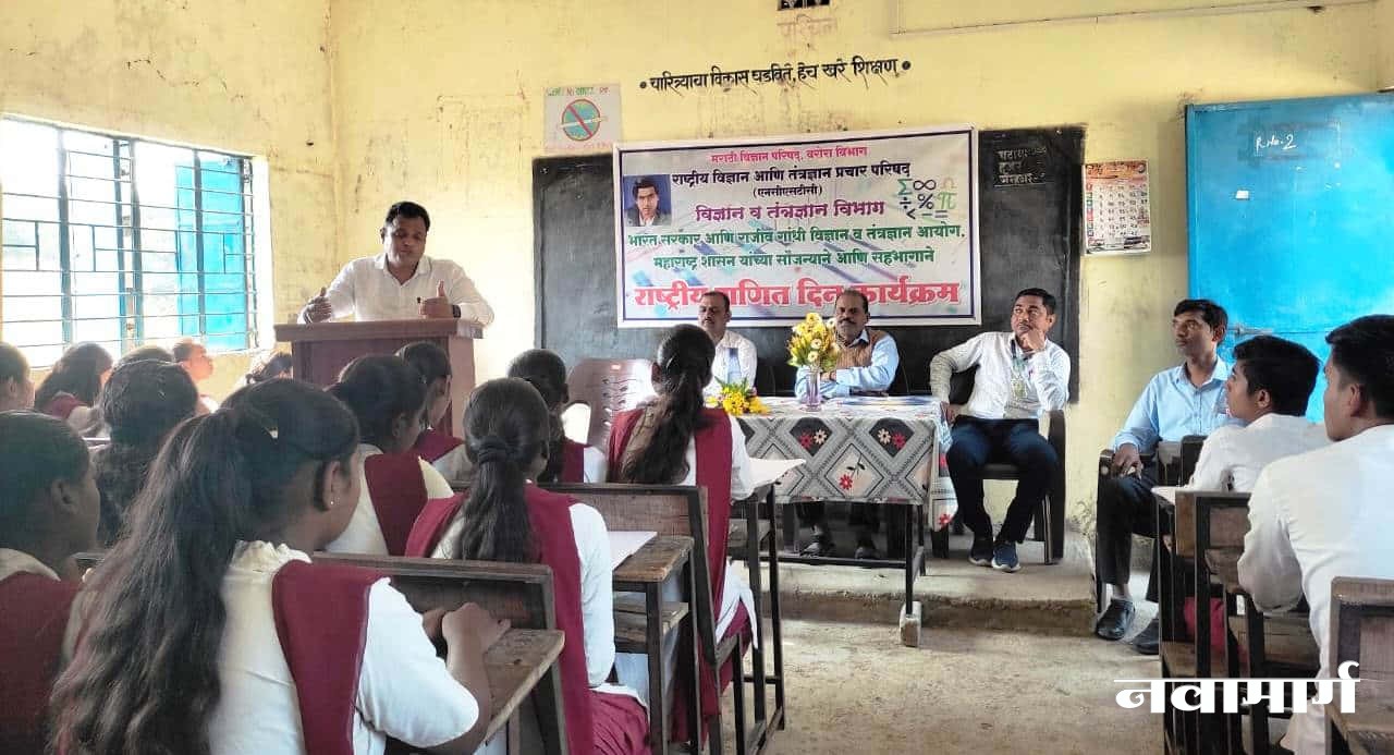 वरोरा : माणूस सकाळी उठल्यापासून तर रात्री झोपत पर्यंत वेगवेगळ्या कामात विविध प्रकारे गणिताचा वापर करीत असतो. यामुळे गणित हा मानवी जीवनाचा अविभाज्य घटक बनला आहे असे प्रतिपादन आनंदनिकेतन कनिष्ठ महाविद्यालयाचे प्रा. विष्णुकांत मत्ते यांनी केले. भारतीय गणितज्ञ श्रीनिवास रामानुजन यांचा जन्मदिवस राष्ट्रीय गणित दिवस म्हणून साजरा करण्यात येतो. सदर कार्यक्रम तालुक्यातील सूमठाणा येथील सर्वोदय विद्यालयात गुरुवार दि. १९ डिसेंबर रोजी साजरा करण्यात आला. या कार्यक्रमात प्राध्यापक विष्णुकांत मत्ते बोलत होते. पुढे बोलताना त्यांनी भारतीय गणितज्ञ श्रीनिवास रामानुजन यांच्या जीवन कार्यावर प्रकाश टाकला.