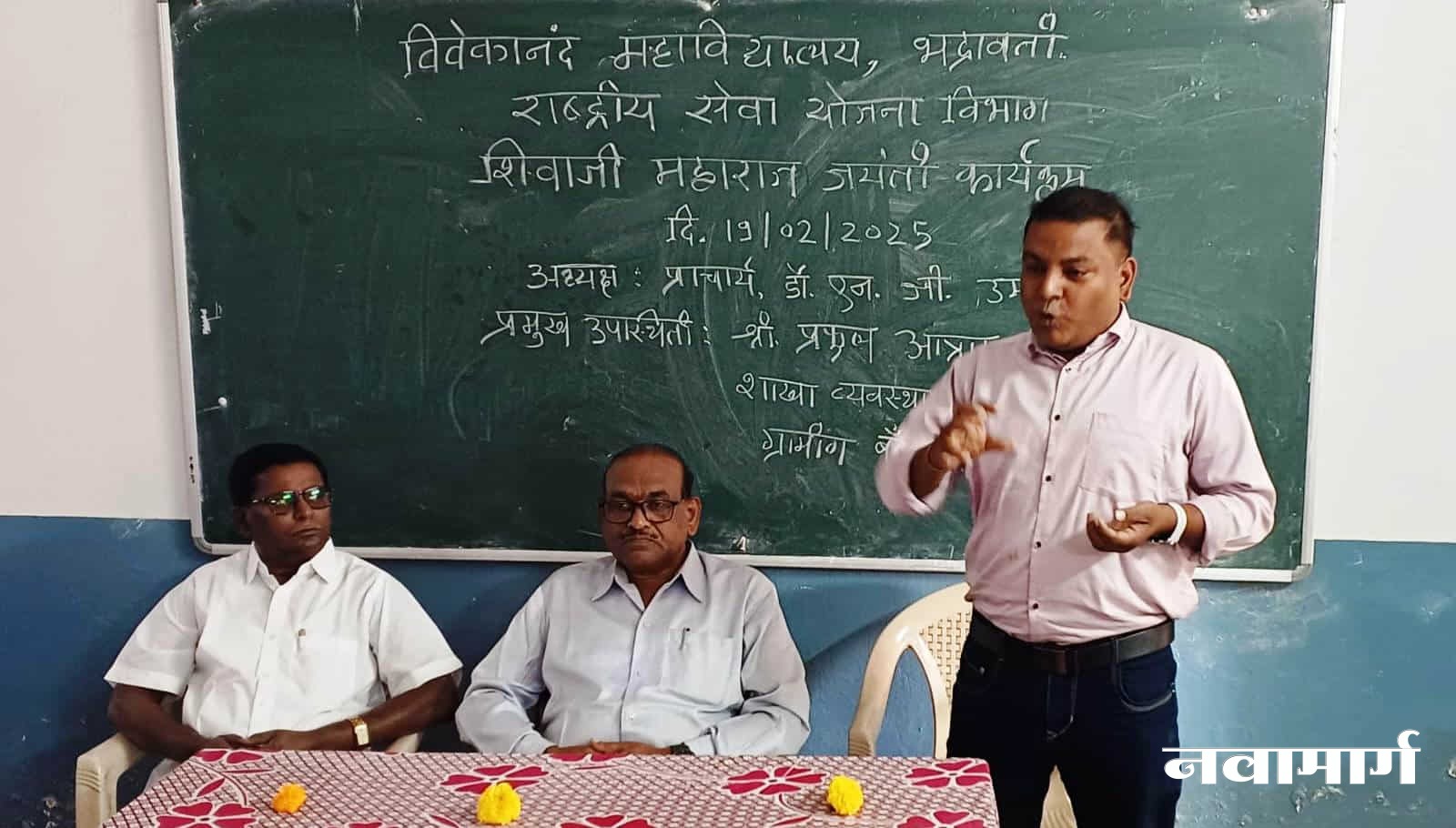 भद्रावती : स्थानिक विवेकानंद महाविद्यालयातील राष्ट्रीय सेवा योजना विभागाच्यावतीने छत्रपती शिवाजी महाराज यांच्या जयंतीचा कार्यक्रम आयोजित करण्यात आला.