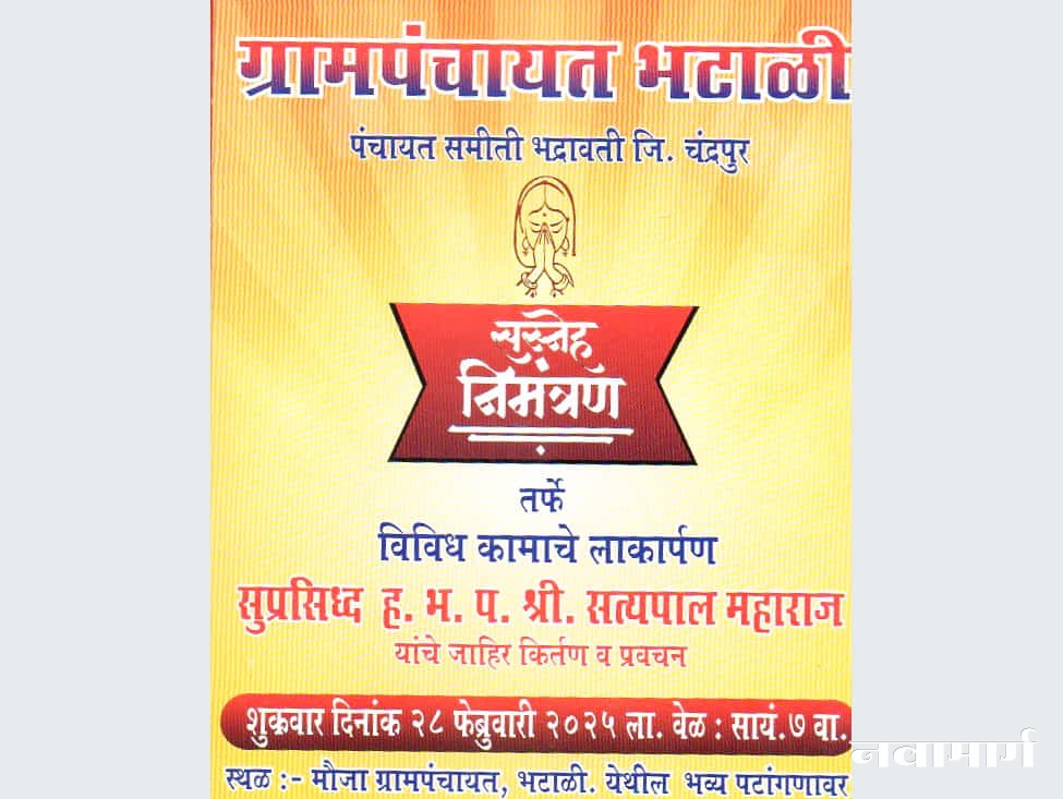 . या कार्यक्रमाला आपण सहपरीवारसह उपस्थित राहावे असे आवाहन गुरुदेव सेवा मंडळ भटाळी, श्रीराम क्रिडा मंडळ भटाळी, ग्रामपंचायत कर्मचारी व गावकरी तसेच सर्व क्रिडा मंडळ, ग्रामपंचायत भटाळीचे सरपंच सुधाकर रोहणकर यांनी केले आहे.