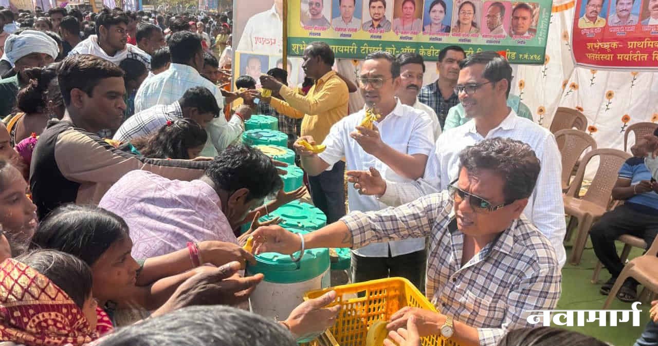 नागभीड : येथे वर्षानुवर्षापासून सुरू असलेली परंपरा शिवटेकडी येथे महाशिवरात्री यात्रा मोठ्या उल्हासात भरत असते. पंचक्रोशीतील शिवभक्त महादेवाच्या दर्शनाला पहाटेपासून मोठ्या संख्येने सहभागी होत असतात. उन्हाची तीव्रता लक्षात घेता भक्तांची गैरसोय होऊ नये याकरिता प्रशासनाने उत्तम व्यवस्था केलेली असते. यामध्ये विविध राजकीय संघटना यांचेकडून नाश्ता व विविध कार्यक्रमांची रेलचेल असते .त्यामध्ये अखिल शिक्षक संघाने सुद्धा सामाजिक बांधिलकी जपत सकाळपासून भक्तांना थंड पाणी व फळांचे वाटप करून आपली बांधिलकी सिद्ध केली.