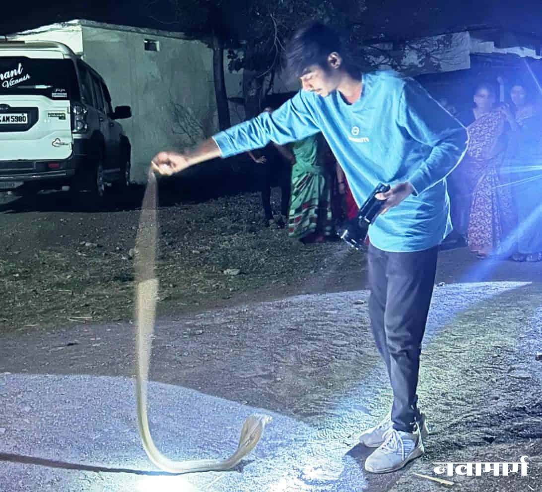 . राजुरा तालुक्यातील गोवरी नागरिक बादल गिरी यांचे घरी सोमवारी रात्री ९ वाजताच्या सुमारास अचानक साप दिसला. त्यानंतर गिरी यांनी इतर गावकऱ्यांना याची माहिती दिली. नागरिकांनी घाबरून न जाता राजुरा येथील सर्पमित्रांशी संपर्क साधला. काही वेळातच राजुरा येथील सर्पमित्र रोहन आकनुरवार व साहिल पेंदाम घटनास्थळी पोहोचले. त्यांनी मोठ्या शिताफीने सावधगिरी बाळगत योग्य कौशल्य वापरून सापाला जिवंत पकडले. नंतर त्या सापाची योग्य ओळख पटवून नैसर्गिक अधिवासात सोडण्यात आले. सर्पमित्रांच्या या तत्परतेबद्दल गावकऱ्यांनी त्यांचे आभार मानले.