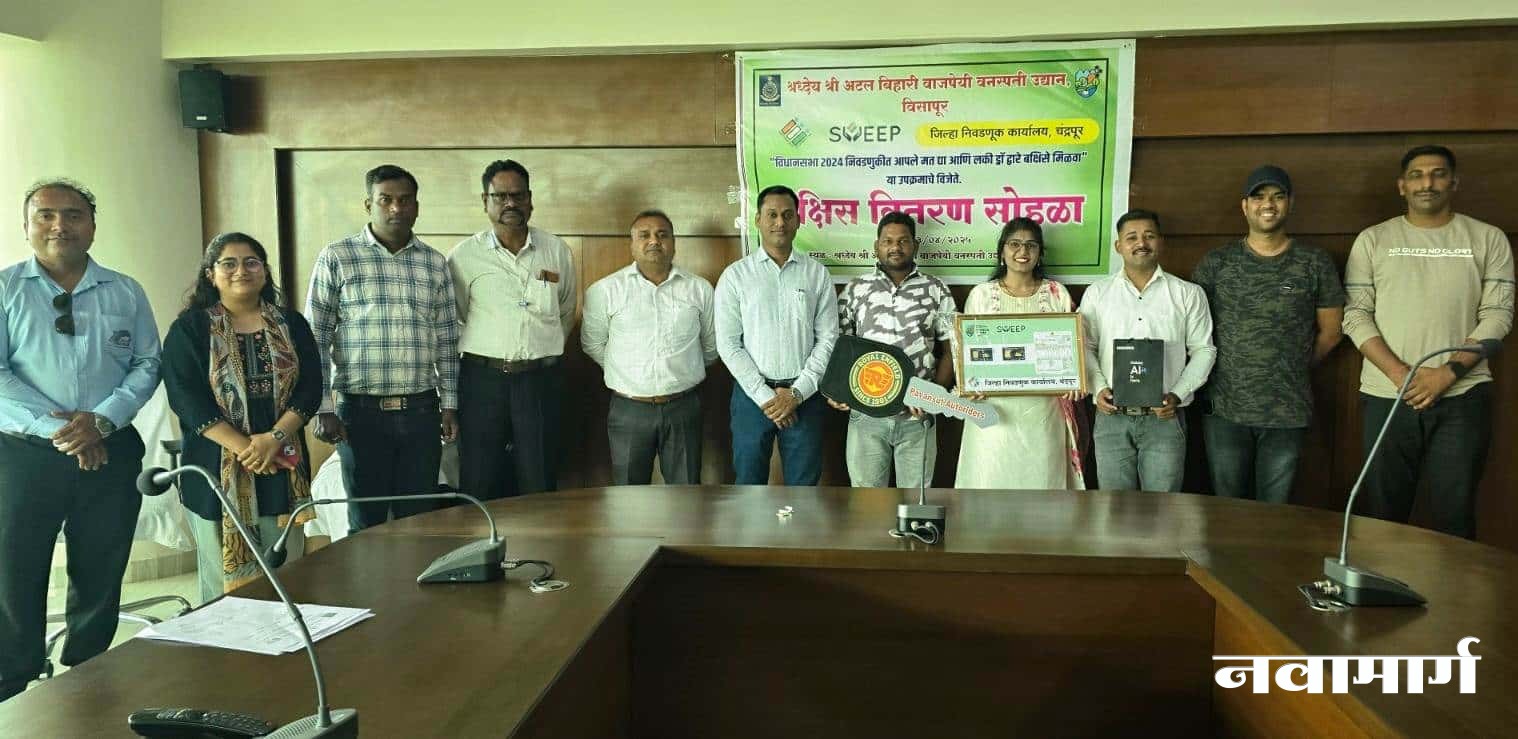 बल्लारपूर : चंद्रपूर जिल्हा प्रशासनाने विधानसभा सार्वत्रिक निवडणूक दरम्यान मतदानाचा टक्का वाढीसाठी विविध उपक्रम राबविले होते. याच अनुषंगाने स्विप उपक्रमांतर्गत सेल्फी व विविध स्पर्धा पार पडल्या होत्या. यामध्ये जिल्ह्यातील ८ हजार ८0 स्पर्धकांनी आनलाईन स्पर्धेत सहभाग घेतला होता. या स्पर्धेतील विजेत्यांना बल्लारपूर तालुक्यातील विसापूर येथील श्रदेय माजी पंतप्रधान अटल बिहारी वाजपेयी बॉटनिकल गार्डनमध्ये एका शानदार सोहळ्यात गुरुवारी सन्मानित करण्यात आले.