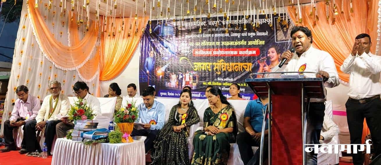 बल्लारपूर : भारतरत्न डॉ बाबासाहेब आंबेडकरांनी संविधान निर्मितीसाठी कठोर परिश्रम घेतले आहे. हजारो वर्षासाठी संविधान मार्गदर्शक राहणार आहे.हे संविधान घराघरांत असेल पाहिजे.शासनाचे हेच धोरण आहे.ही राज्य घटना लोकांसाठी समर्पित केली आहे. ७५ व्या वर्षात याचे महत्व अधिक अधोरेखित होत आहे. सर्व घटकांना सामाजिक न्याय, समतेचे मूल्य, बंधुत्व, लोकशाही, राजकीय, समाजवादी विचार आपणास प्रेरणादायी आहे. खऱ्या अर्थाने संविधानात लोककल्याणाची संकल्पना अंतर्भूत आहे, असे प्रतिपादन जिल्हा परिषद जिल्हा ग्रामीण यंत्रणेचे प्रकल्प संचालक तथा उपमुख्य कार्यकारी अधिकारी गिरीश घायगुडे यांनी विसापूर येथील संविधान जागर कार्यक्रमाच्या उदघाटन प्रसंगी केले.