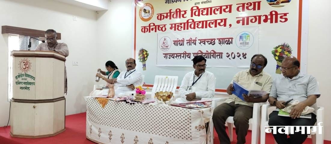 .    यावर्षी या स्पर्धेत राज्यभरातून 46 शाळांची निवड झाली असून यात चंद्रपूर जिल्ह्यातून दोन शाळा पात्र ठरले आहेत. त्यात कर्मवीर विद्यालय तथा कनिष्ठ महाविद्यालय नागभीड चा समावेश असून नुकतीच अंतिम परीक्षणासाठी गांधी तीर्थ स्वच्छ शाळा प्रतियोगितेचे राज्य समन्वयक गिरीश कुलकर्णी यांनी आपले सहकारी चंद्रशेखर पाटील आणि संजय जाधव यांचे सह विद्यालयास भेट दिली.