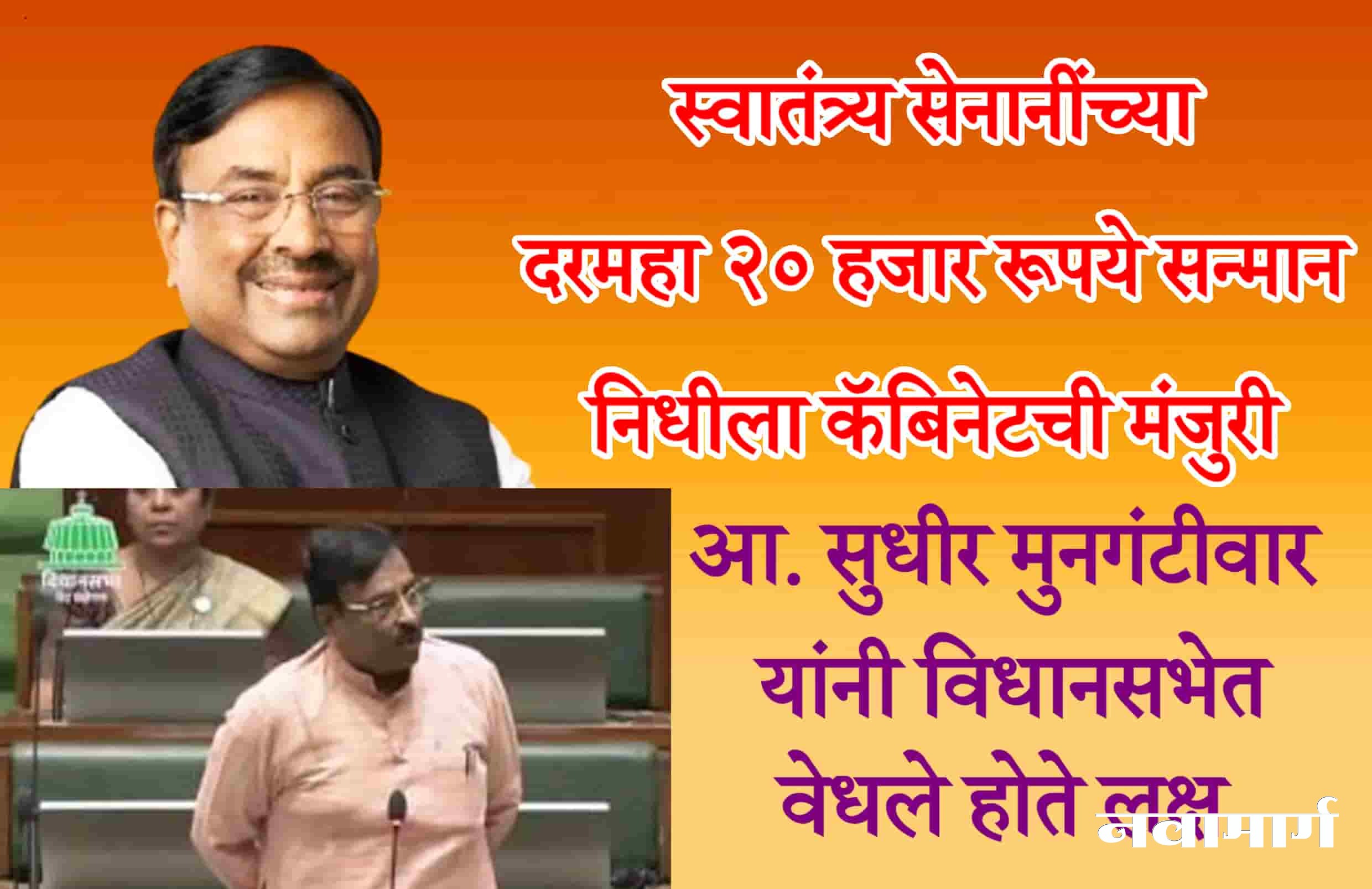 चंद्रपूर : आणीबाणीच्या काळात कुटुंबाचा आणि स्वतःचा जराही विचार न करता केवळ “राष्ट्र सर्वोपरी” म्हणून देशासाठी कारावास भोगून संघर्ष करणाऱ्या लोकतंत्र सेनानींना दरमहा २० हजार रुपये सन्मान निधी मिळावा, यासाठी राज्याचे माजी वने, सांस्कृतिक कार्य व मत्स्यव्यवसाय मंत्री आमदार सुधीर मुनगंटीवार यांनी विधानसभेत लक्षवेधीच्या माध्यमातून आवाज बुलंद केला होता. त्यानंतर मुख्यमंत्री देवेंद्र फडणवीस यांनाही निवेदनाच्या माध्यमातून मागणी केली होती. आज राज्याच्या मंत्रीमंडळाच्या बैठकीत या प्रस्तावाला मंजुरी देण्यात आली आहे. आ. सुधीर मुनगंटीवार यांच्या पुढाकारामुळेच हे शक्य झाले, या शब्दांत लोकतंत्र सेनानींनी त्यांचे आभार मानले आहेत.
