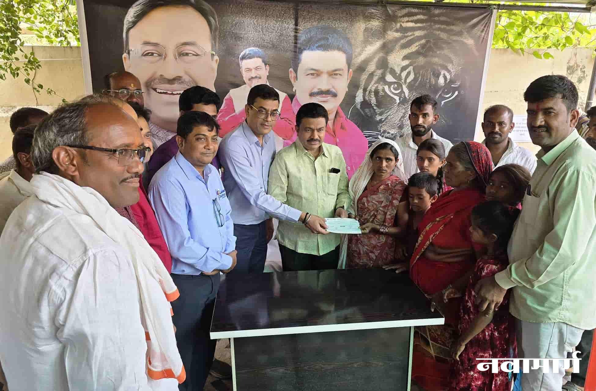 .       त्यानंतर उर्वरित रक्कम 18,50,000/- मिळण्याकरिता जिल्हा अध्यक्ष महेशभाऊ देवकते यांच्या सतत पाठपुरावा चालू होता व कंपनी मान्य करून दिनांक 16 जून 2025 रोजी आमदार देवराव भोंगळे यांच्या राजुरा येथील जनसंपर्क कार्यालय येथे येऊन आमदार देवराव भोंगळे यांच्या हस्ते राहिलेली पूर्ण रक्कम धनादेश स्वरूपात प्रकाश राठोड यांची आई व त्याची पत्नी व मुले यांच्या कडे 18 लाख 50 हजाराचा धनादेश स्वाधीन केले. त्याच बरोबर मृतक व्यक्तीचि मोठी मुलगी सध्या अकरावी वर्गात शिकत असून तिचे शिक्षण पूर्ण होऊन तिचे अठरा वर्ष पूर्ण झाल्यानंतर तिच्या शिक्षणाच्या योग्यतेनुसार तिला कामावर घेण्याचा तसा करारनामा कंपनीकडून लिहून घेण्यात आला.