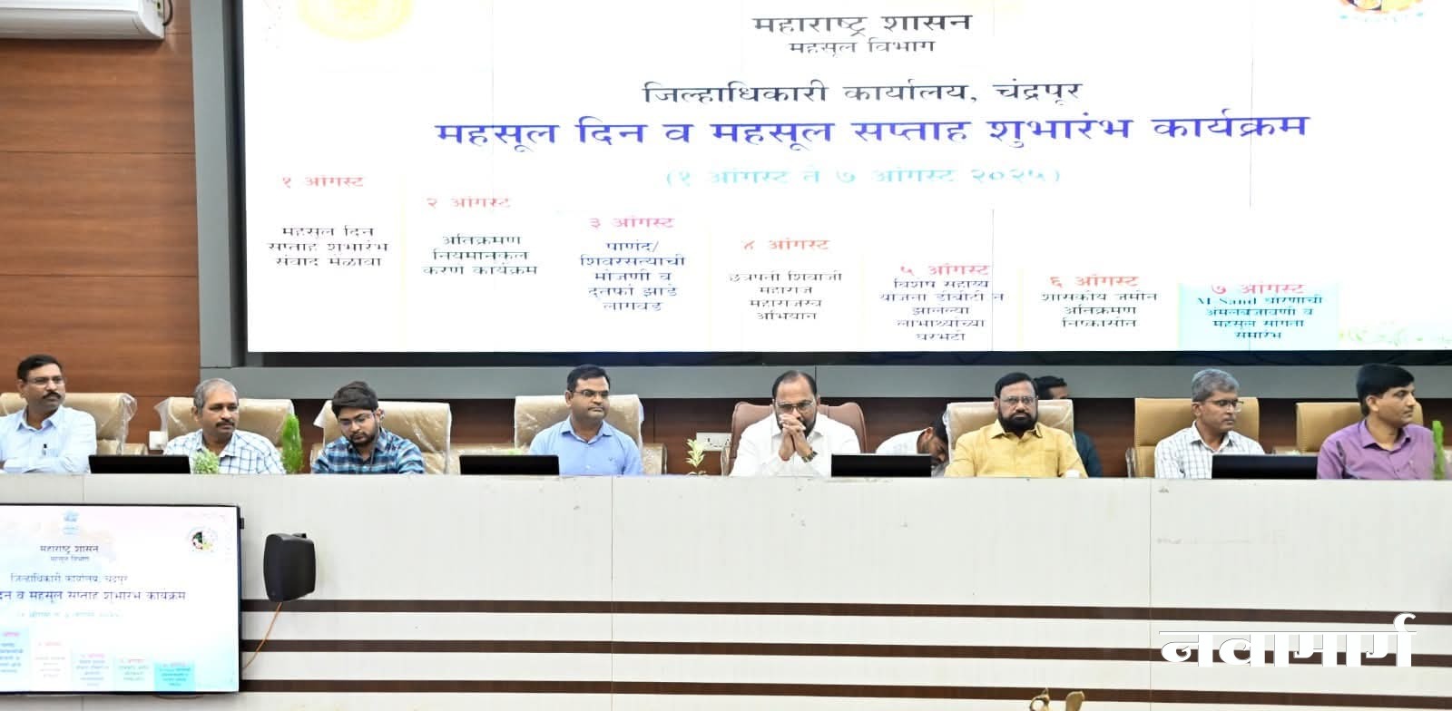 . नियोजन सभागृह येथे महसूल दिन व महसूल सप्ताहाचा शुभारंभ करताना ते बोलत होते. यावेळी मंचावर आमदार सुधाकर अडबाले, किशोर जोरगेवार, निवासी उपजिल्हाधिकारी दगडू कुंभार, उपजिल्हाधिकारी संजय पवार, शुभम दांडेकर, अतुल जटाळे, उपविभागीय अधिकारी संजय पवार, रवींद्र माने, पर्यावरण तज्ज्ञ डॉ. सुरेश चोपणे, अधीक्षक नरेंद्र बहिरम आदी उपस्थित होते.