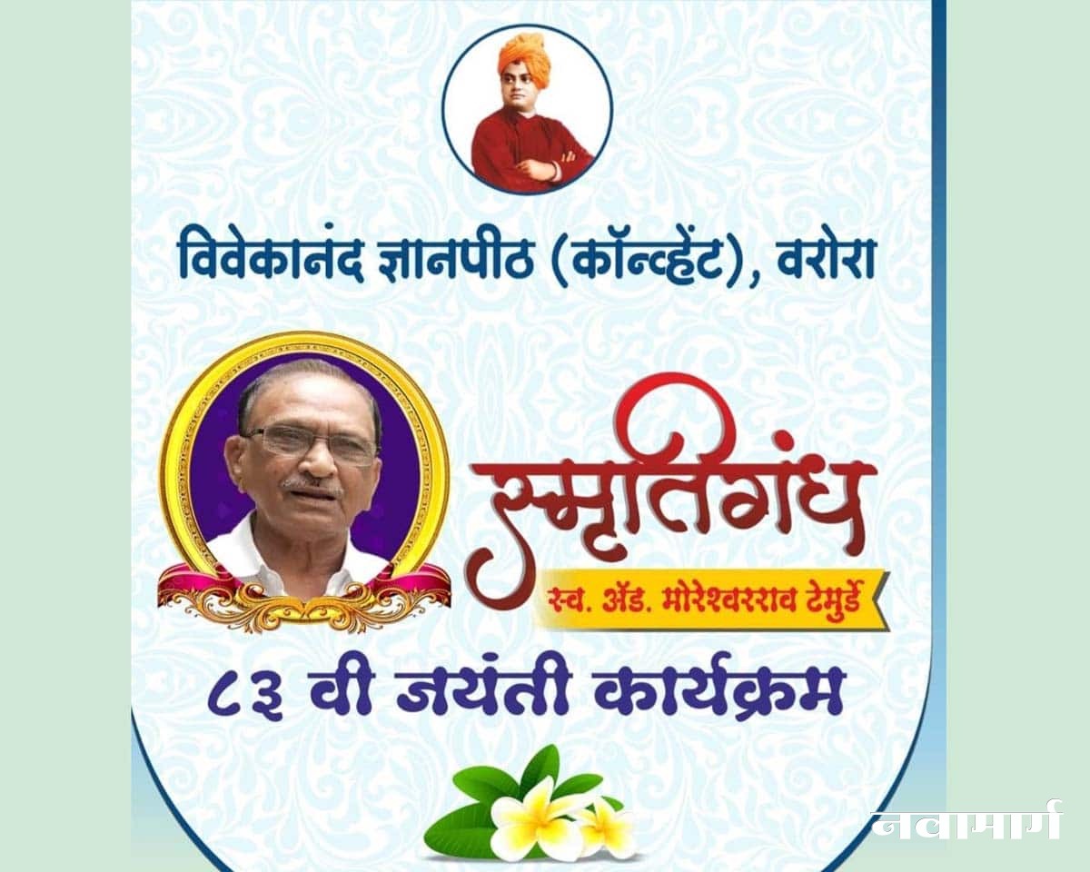 भद्रावती : माजी विधानसभा ऊपाध्यक्ष तथा विवेकानंद ज्ञानपीठ, वरोराचे माजी अध्यक्ष स्व. ॲड. मोरेश्वर टेंमुर्डे यांच्या ८३ व्या जयंतीनिमित्त दिनांक ४ रोज सोमवारला शहरातील श्री मंगल कार्यालय येथे स्मृतीगंध कार्यक्रमाचे आयोजन करण्यात आले आहे.![]()