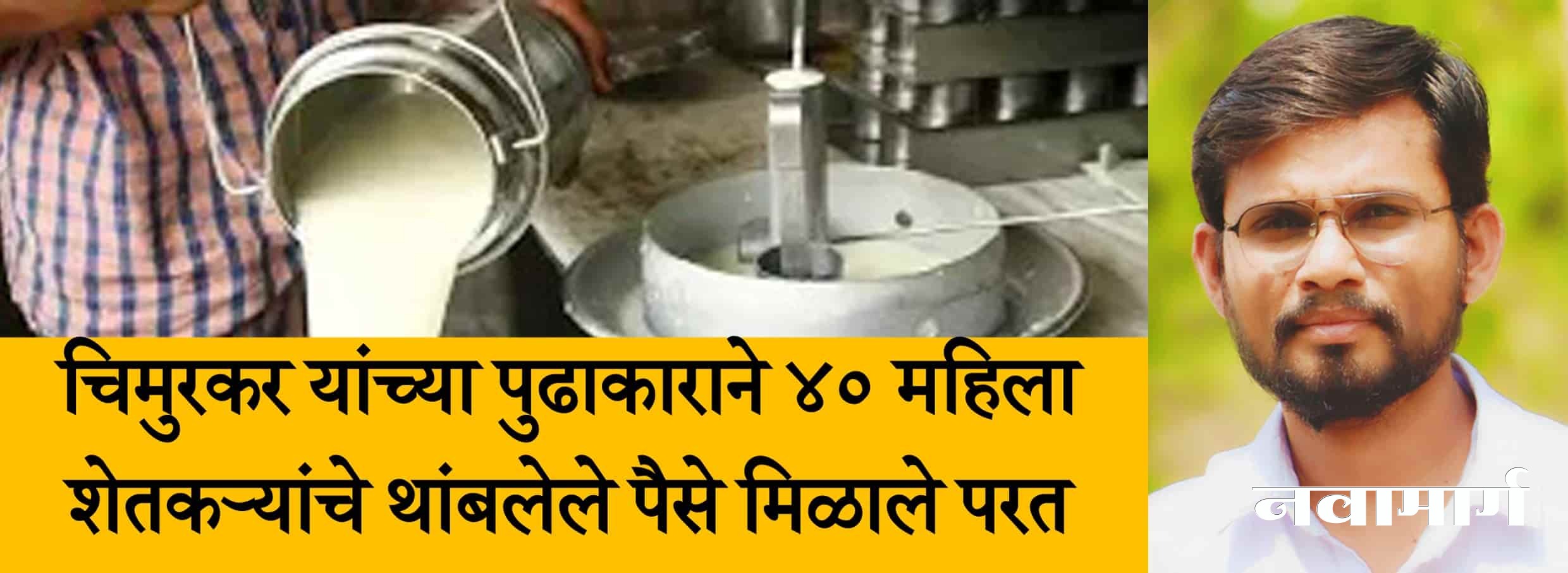 भद्रावती : तालुक्यातील ४० दुग्ध व्यवसायिक महिला शेतकऱ्यांना थांबलेली थकबाकीची रक्कम अखेर परत मिळाली असून, या कार्यवाहीसाठी जिल्हा ग्राहक संरक्षण परिषद चंद्रपूरचे सदस्य प्रविण चिमुरकर यांच्या पुढाकाराचे कौतुक होत आहे.