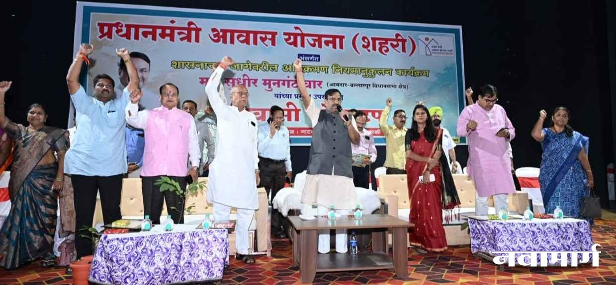 . बल्लारपूर, नाट्यगृह येथे प्रधानमंत्री आवास योजना (शहरी) अंतर्गत शासनाच्या जागेवरील अतिक्रमण नियमानुकूलन निवासी पट्टेवाटप कार्यक्रमाप्रसंगी ते बोलत होते. कार्यक्रमाला भाजपा जिल्हाध्यक्ष हरीश शर्मा, वन विकास महामंडळाचे माजी अध्यक्ष चंदनसिंह चंदेल,कामगार मोर्चाचे प्रदेश महासचिव अजय दुबे,शहर अध्यक्ष रणजंय सिंग, समीर केने, जयश्री मोहूर्ले, राजू दारी, नगरपरिषदेचे मुख्याधिकारी विशाल वाघ,तहसीलदार रेणुका कोकाटे, उपअधीक्षक भूमि अभिलेख अनिल देशमुख, अग्निशमन अधिकारी शुभम रत्नपारखी, नायब तहसीलदार फुलझेले आदींची उपस्थिती होती.