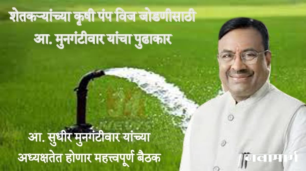 चंद्रपूर : राज्याचे माजी वने, सांस्कृतिक कार्य व मत्स्यव्यवसाय मंत्री आमदार सुधीर मुनगंटीवार यांनी राज्यातील शेतकऱ्यांच्या कृषी पंपाच्या वीज जोडणीसंबंधी प्रलंबित प्रकरणांचा आढावा घेऊन त्वरित उपाययोजना करून तोडगा काढण्यासाठी महत्त्वपूर्ण बैठक होणार आहे. आ. मुनगंटीवार यांच्या अध्यक्षतेत होणाऱ्या या बैठकीमध्ये शेतकऱ्यांचा प्रश्न मार्गी लागेल, असा विश्वास व्यक्त होत आहे.