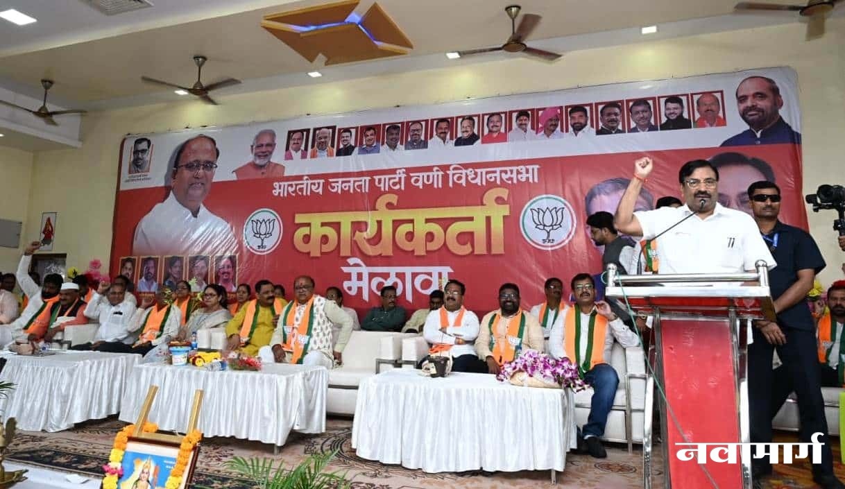 . एस.बी. लाॅन वणी येथे आयोजित भारतीय जनता पार्टी वणी विधानसभा कार्यकर्ता मेळाव्यात संबोधित करताना ते बोलत होते. यावेळी चंद्रपूर जिल्हाचे पालकमंत्री अशोक उईके,माजी आमदार संजीव रेड्डी बोदकूरवार, ललिता बोदकूरवार, माजी जिल्हाध्यक्ष तारेंद्र बोर्डे, दिनकर पावडे, विजय पिदुरकर, खाडे, विजय पिंपळशेंडे, रवि बेलूरकर, कुणाल चोरडीया, श्रीकांत पोटदुखे, मंगला पावडे, संध्या अवताडे, उमा पिदुरकर, मिरा पोतराजे, प्रदीप जेऊरकर, निलेश चौधरी, अविनाश लांबट, संतोष डंभारे उपस्थित भाजपाचे भाजपाचे पदाधिकारी कार्यकर्ते कामगार संघटनेचे पदाधिकारी कार्यकर्ते मोठ्या संख्येने उपस्थित होते.