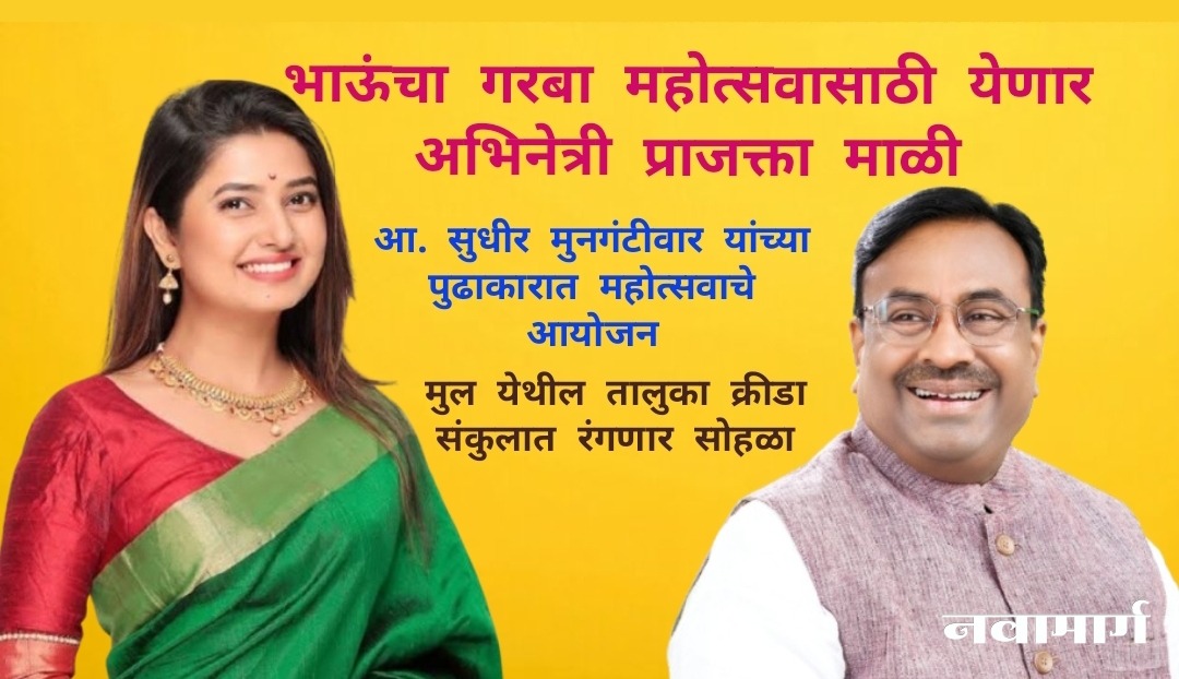चंद्रपूर : राज्याचे माजी वने, सांस्कृतिक कार्य व मत्स्यव्यवसाय मंत्री आमदार सुधीर मुनगंटीवार यांच्या नेतृत्वात आयोजित ‘भाऊंचा गरबा महोत्सवा’साठी सुप्रसिद्ध अभिनेत्री प्राजक्ता माळी यांची प्रमुख उपस्थिती विशेष आकर्षण ठरणार आहे. मुल येथील तालुका क्रीडा संकुलात या महोत्सवाचे आयोजन करण्यात आले आहे.