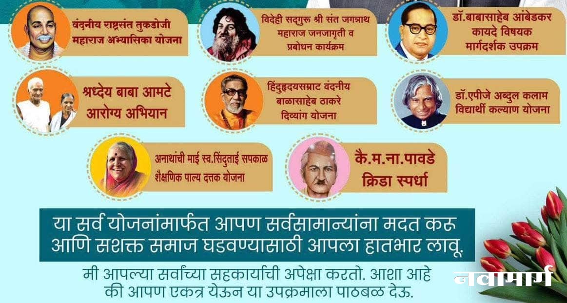 . ट्रस्टतर्फे वंदनीय राष्ट्रसंत तुकडोजी महाराज अभ्यासिका योजना-ग्रामीण विद्यार्थ्यांना मोफत अभ्यास साहित्य व वाचनालय सुविधा, सदुरू श्री संत जगनाथ महाराज जनजागृती कार्यक्रम-समाजात नैतिकतेचा आणि ऐक्याचा संदेश. डॉ. बाबासाहेब आंबेडकर कायदे मार्गदर्शन उपक्रम वंचित घटकांना न्यायिक माहिती व सहाय्य. श्रद्धेय बाबा आमटे आरोग्य अभियान-ग्रामीण भागात मोफत आरोग्य तपासणी व औषध वितरण. हिंदुहृदयसम्राट बाळासाहेब ठाकरे दिव्यांग योजना-दिव्यांग व्यक्तींना सहाय्यक उपकरणांचे वाटप. डॉ. ए. पी. जे. अब्दुल कलाम विद्यार्थी कल्याण योजना-विद्यार्थ्यांना शैक्षणिक मार्गदर्शन व करिअर सल्ला. अनाथांची माई स्व. सिंधुताई सपकाळ शैक्षणिक पाल्य योजना-अनाथ बालकांना शैक्षणिक मदत. कै. म. ना. पावडे क्रीडा स्पर्धा-ग्रामीण तरुणांना खेळाद्वारे प्रोत्साहन. तसेच, सहकारी संस्थांच्या अडचणी समजून घेऊन त्यांचे निराकरण करण्याचे प्रयत्न करण्यात येतील.