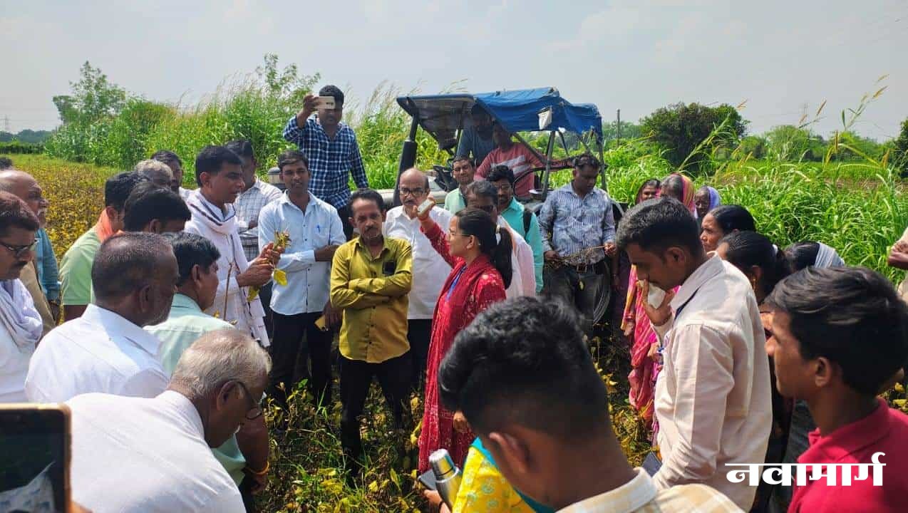 .      भद्रावती तालुक्यातील नंदोरी गावात गुरुवारी उपविभागीय कृषी अधिकारी कविता हरिणखेडे यांच्या उपस्थितीत उभ्या सोयाबीन पिकात ट्रॅक्टर चालविण्यात आला असून तालुक्यातील शेकडो शेतकऱ्यांचा आक्रोश कृषी विभागासमोर व्यक्त झाला आहे.