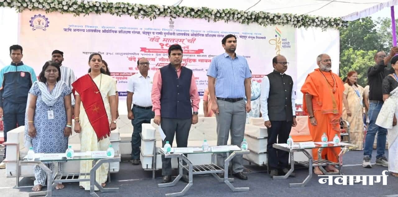 चंद्रपूर : भारतीय स्वातंत्र्यलढ्याला नवी दिशा आणि उर्जा देणारे बंकिमचंद्र चट्टोपाध्याय लिखीत ‘वंदे मातरम’ या गिताच्या रचनेला 150 वर्षे पूर्ण झाली. त्या निमित्ताने कौशल्य विकास, रोजगार, उद्योजकता आणि नाविन्यता विभागाच्या अंतर्गत येणारे चंद्रपूर येथील ऋषी अगस्त्य शासकीय औद्योगिक प्रशिक्षण संस्था आणि राणी दुर्गावती शासकीय औद्योगिक प्रशिक्षण संस्था (मुलींची) यांच्या संयुक्त विद्यमाने आयोजित सामूहिक गायन कार्यक्रमात 3 हजार शालेय विद्यार्थ्यांनी ‘वंदे मातरम’ चा सूर लावून भारत भुमिचा गौरव केला.