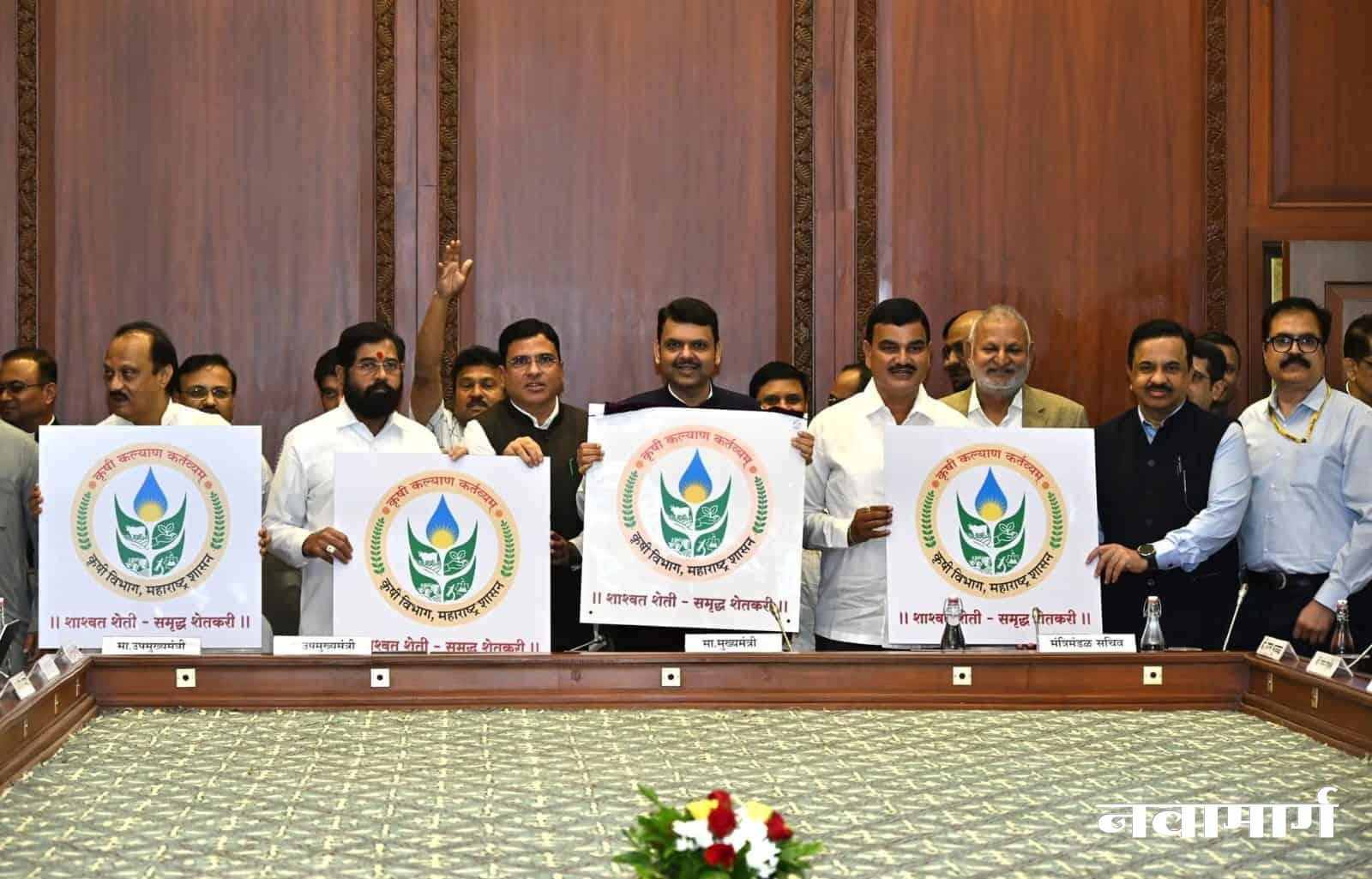 चंद्रपूर : मुख्यमंत्री देवेंद्र फडणवीस यांनी आज सह्याद्री अतिथीगृह, मुंबई येथे राज्य कृषी विभागाच्या नवीन बोधचिन्हाचे तसेच ‘शाश्वत शेती – समृद्ध शेतकरी’ या नवीन घोषवाक्याचे अनावरण केले. यावेळी उपमुख्यमंत्री एकनाथ शिंदे, अजित पवार, कृषी मंत्री दत्तात्रय भरणे, मंत्री सर्वश्री चंद्रशेखर बावनकुळे, माणिकराव कोकाटे, हसन मुश्रीफ, गिरीश महाजन, राज्यमंत्री ॲड. आशिष जयस्वाल, मुख्य सचिव राजेश कुमार, कृषि आयुक्त सुरज मांढरे, उपसचिव प्रफुल्ल ठाकूर, संचालक रफिक नाईकवाडी, कृषी विभागाचे अधिकारी आणि कर्मचारी उपस्थित होते. बोधचिन्ह स्पर्धेतील विजेता आणि घोषवाक्य स्पर्धेतील विजेत्यांचा यावेळी सत्कार करण्यात आला.