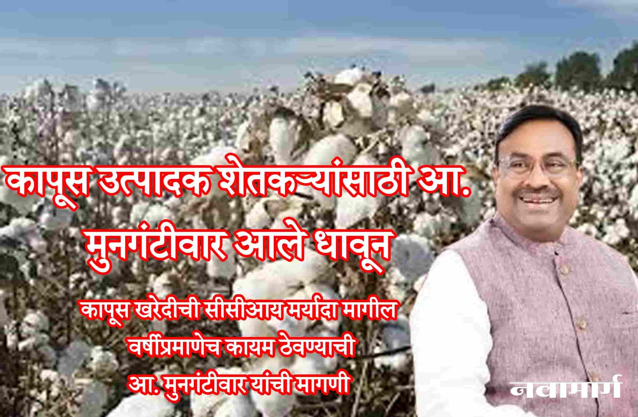 .       सन 2025-26 या चालू हंगामात ठरवून दिलेल्या मर्यादेपेक्षा अधिक उत्पादन घेणाऱ्या कापूस उत्पादक शेतकऱ्यांना उर्वरीत कापूस एमएसपी पेक्षा कमी दरात व्यापाऱ्यांना विकण्याची वेळ येणार नाही. याकरीता सीसीआयमार्फत कापूस खरेदीची मर्यादा मागील वर्षीची कायम ठेवून चंद्रपूर व यवतमाळ जिल्ह्यातील कापूस उत्पादक शेतकऱ्यांवर अन्याय होणार नाही यादृष्टीने प्रशासनाला आदेश द्यावे, असे आ. मुनगंटीवार यांनी मुख्यमंत्र्यांना लिहिलेल्या पत्रात म्हटले आहे.