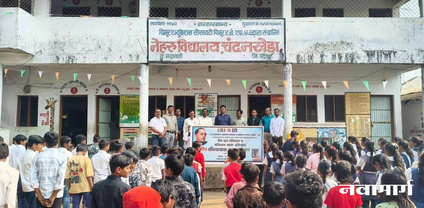 भद्रावती : भारतीय घटनेचे शिल्पकार, महामानव, भारतरत्न, डॉ बाबासाहेब आंबेडकर यांनी दि. २६ नोव्हेंबर १९४९ या दिवशी आपल्या देशाला संविधान दिले म्हणून दि. २६ नोव्हेंबर हा दिवस आपल्या संपूर्ण भारत देशामध्ये भारतीय संविधान दिन म्हणून उत्साहात साजरा केला जातो. भारतीय संविधानचा अमृत महोत्सव निमित्य बार्टी चे समतादूत गणेश हनवते यांच्या मार्गदर्शनाखाली नेहरू विद्यालय चंदनखेडा व शौर्य क्रीडा मंडळ चंदनखेडा एकत्रित येऊन दौड फॉर संविधान घेण्यात आले तसेच भारताचे संविधान उद्देशिकाचे सामूहिक वाचन, वक्तृव स्पर्धा, चित्रकला स्पर्धा, पदयात्रा, कार्यक्रमाचे आयोजन डॉ. बाबासाहेब आंबेडकर संशोधन व प्रशिक्षण संस्था बार्टी पुणे व नेहरू विद्यालय चंदनखेडा यांनी केले होते.