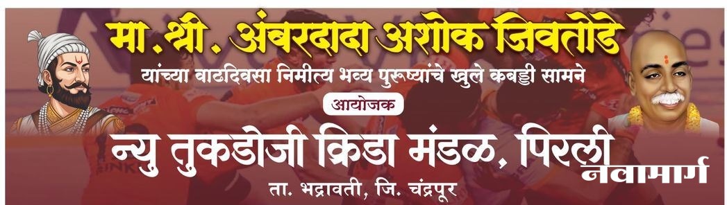 चंद्रपुर : भद्रावती तालुक्यातील पिरली येथे सामाजिक कार्यकर्ते अंबर अशोक जिवतोडे यांच्या वाढदिवसानिमित न्यु तुकडोजी क्रिडा मंडळ, पिरली च्या वतीने दोन दिवसीय भव्य कबड्डी सामने दि. 12 व 13 डिसेंबर 2025 रोजी सेवा सहकारी संस्था पिरली च्या भव्य पटांगणामध्ये आयोजन करण्यात आले आहे. या कबड्डी सामन्याचे आयोजन अंबर अशोक जिवतोडे यांनी केले आहे.