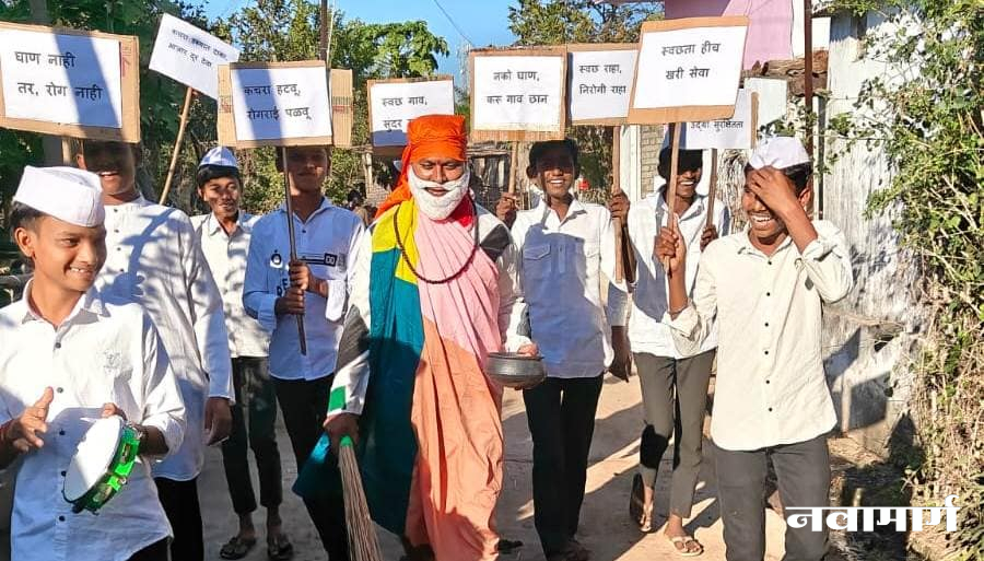 भद्रावती : गुरुदेव सेवा मंडळाच्या वतीने राष्ट्रसंत तुकडोजी महाराज पुण्यतिथी महोत्सवानिमित्त वायगाव येथे विविध सामाजिक व शैक्षणिक उपक्रमांचे आयोजन करण्यात आले. या कार्यक्रमात गाडगेबाबांच्या भूमिकेतून श्री जगन्नाथ बाबा विद्यालय वायगाव चे सहाय्यक शिक्षक मंगेश बोढाले यांनी स्वच्छतेचा प्रभावी संदेश दिला. त्यांच्या प्रेरणादायी सादरीकरणामुळे उपस्थितांमध्ये स्वच्छतेविषयी जनजागृती निर्माण झाली.