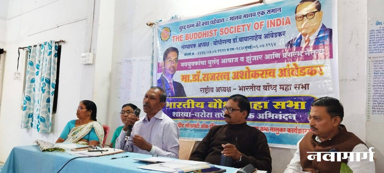 वरोरा : दि बुद्धिस्ट सोसायटी ऑफ इंडिया तथा भारतीय बौद्ध महासभा जिल्हा शाखा चंद्रपूरच्या वतीने वरोरा आणि भद्रावती तालुक्यातील पदाधिकाऱ्यांसाठी एक दिवसीय प्रशिक्षण शिबिराचे आयोजन शिवली बुद्ध विहार, टिळक वार्ड येथे पार पडले. या शिबिरात संघटनात्मक कार्य आणि धम्म विचारांवर सविस्तर मार्गदर्शन करण्यात आले.