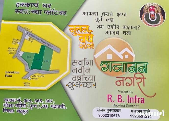 जाहिरातसामाजिकसर्वे जनतेला नवीन वर्षाच्या मन:पूर्वक शुभेच्छा !By Nava Marg - January 1, 2026406ShareWhatsAppFacebookTelegramX सर्वे जनतेला नवीन वर्षाच्या मन:पूर्वक शुभेच्छा ! शुभेच्छुक : आर. बी. इन्फ्रा, गजानन झाडे, संजय पुनवटकरशुभेच्छुक : आर. बी. इन्फ्रा, गजानन झाडे, संजय पुनवटकर.