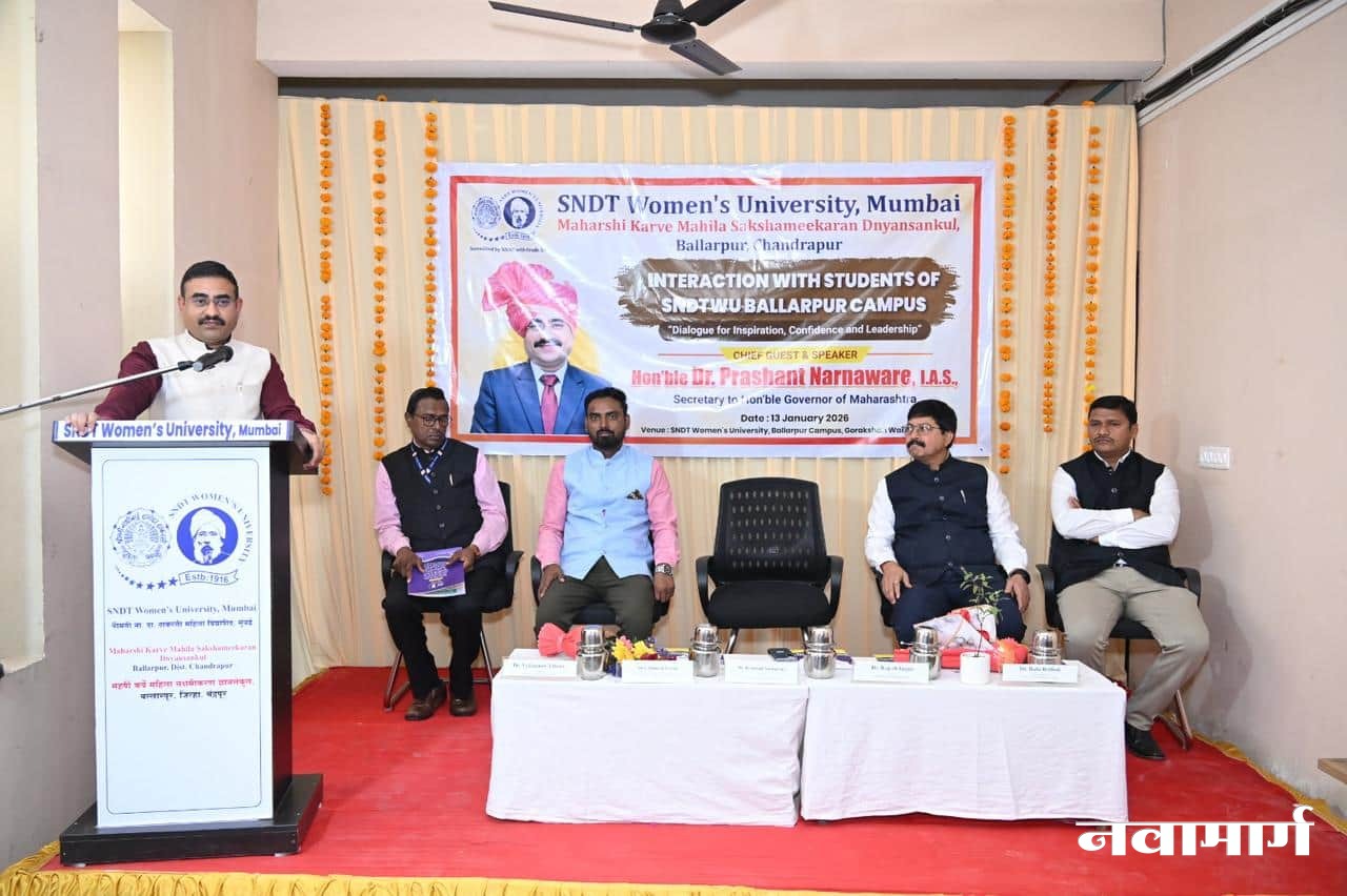 . बल्लारपूर येथील एस. एन. डी. टी. महिला विद्यापीठ संकुलात मार्गदर्शन कार्यक्रम मंगळवार (दि.13) रोजी आयोजित करण्यात आला होता. यावेळी विद्यापीठात विद्यार्थ्यांनी सोबत संवाद साधताना ते बोलत होते. यावेळी कार्यक्रमाच्या अध्यक्षस्थानी एस. एन. डी. टी. महिला विद्यापीठाचे संचालक डॉ. राजेश इंगोले, राज्यपालांचे सचिव डॉ. प्रशांत नारनवरे, अतिरिक्त प्रबंधक रमेश येवले, सहाय्यक कुलसचिव डॉ. बाळू राठोड, समन्वयक डॉ. वेदानंद अलमस्त यांची उपस्थिती होती.