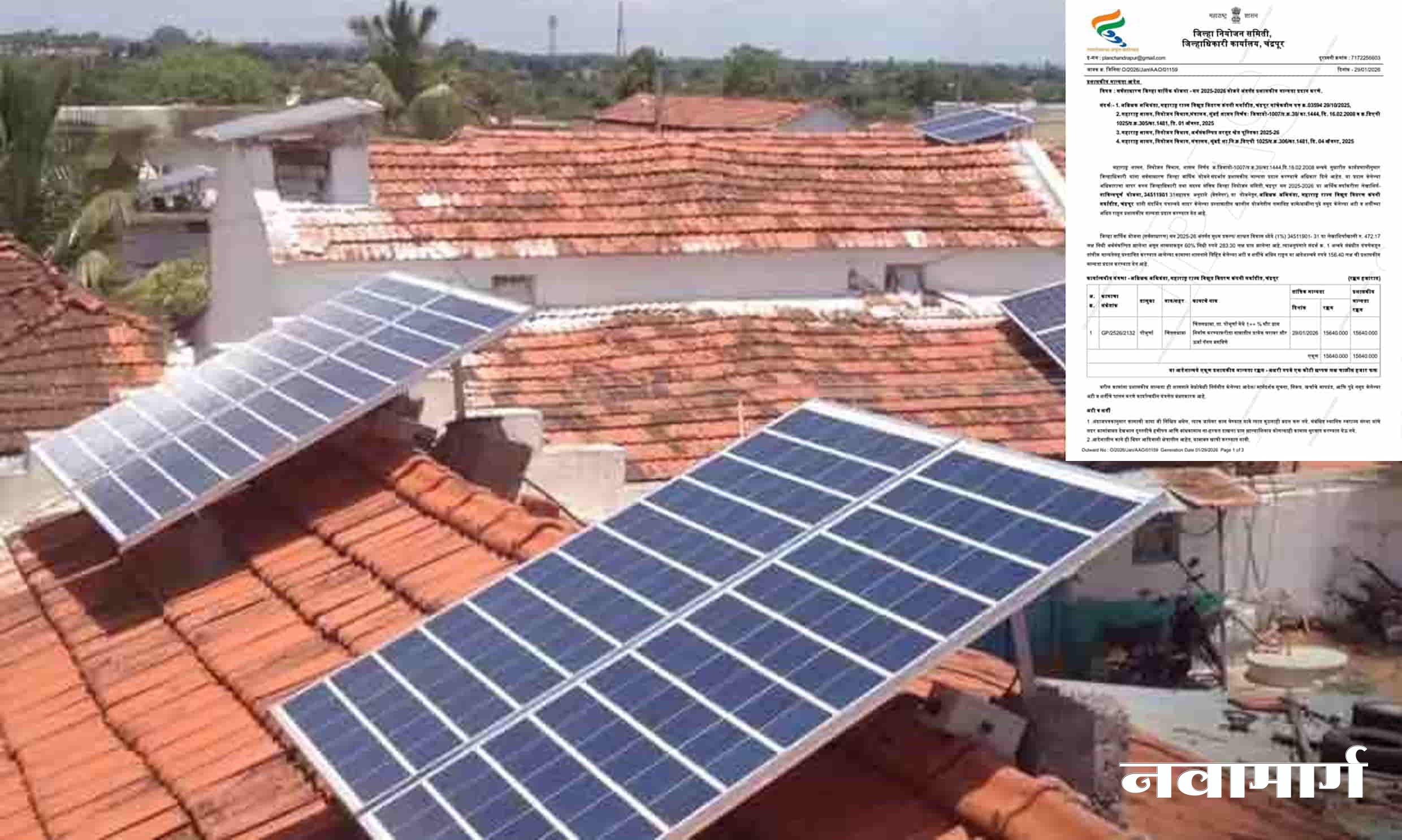 . चिंतलधाबा गाव १०० टक्के सौरग्राम म्हणून विकसित करण्यात येणार असून, गावातील प्रत्येक घरावर सौर ऊर्जा पॅनल बसविण्यात येणार आहेत. यासाठी १ कोटी ५६ लक्ष ४० हजार रुपये निधी मंजूर करण्यात आला आहे. आमदार सुधीर मुनगंटीवार यांच्या सातत्यपूर्ण पाठपुराव्यामुळे हा निधी उपलब्ध झाला असून, चंद्रपूर जिल्हाधिकाऱ्यांनी या निधीस प्रशासकीय मान्यता दिली आहे. या निर्णयामुळे चिंतलधाबा गाव ऊर्जा स्वावलंबनाच्या दिशेने एक महत्त्वाचा टप्पा गाठणार आहे.