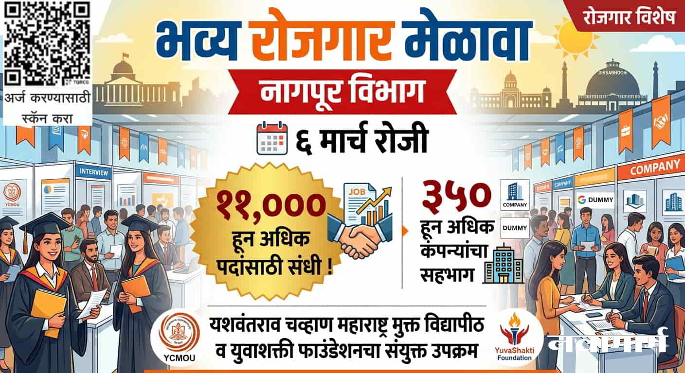 भद्रावती : ग्रामीण आणि वंचित घटकातील सुशिक्षित बेरोजगारांना हक्काचा रोजगार मिळवून देण्यासाठी यशवंतराव चव्हाण महाराष्ट्र मुक्त विद्यापीठ (YCMOU) सरसावले आहे. कुलगुरू डॉ. संजीव सोनवणे यांच्या संकल्पनेतून, नागपूर विभागीय केंद्र आणि युवाशक्ती फाउंडेशन यांच्या संयुक्त विद्यमाने येत्या ६ मार्च रोजी भव्य रोजगार मेळाव्याचे आयोजन करण्यात आले आहे.