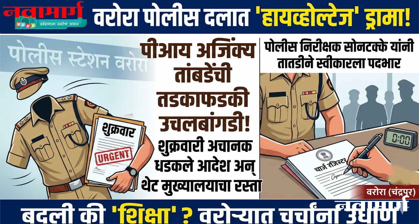 तांबडे यांच्याकडून पदभार स्वीकारल्यानंतर नवनियुक्त पोलीस निरीक्षक सोनटक्के यांनी आजपासूनच आपल्या कार्याची सूत्रे हाती घेतली आहेत. वरोरा पोलीस ठाण्याच्या शांत वातावरणात या बदलीच्या बातमीने चांगलीच खळबळ माजली आहे. तांबडे यांची बदली नेमकी कोणत्या प्रकरणामुळे झाली किंवा कोणत्या वरिष्ठ पातळीवरून हा निर्णय आला, याबाबत अद्याप अधिकृतरीत्या गुप्तता पाळण्यात येत आहे.