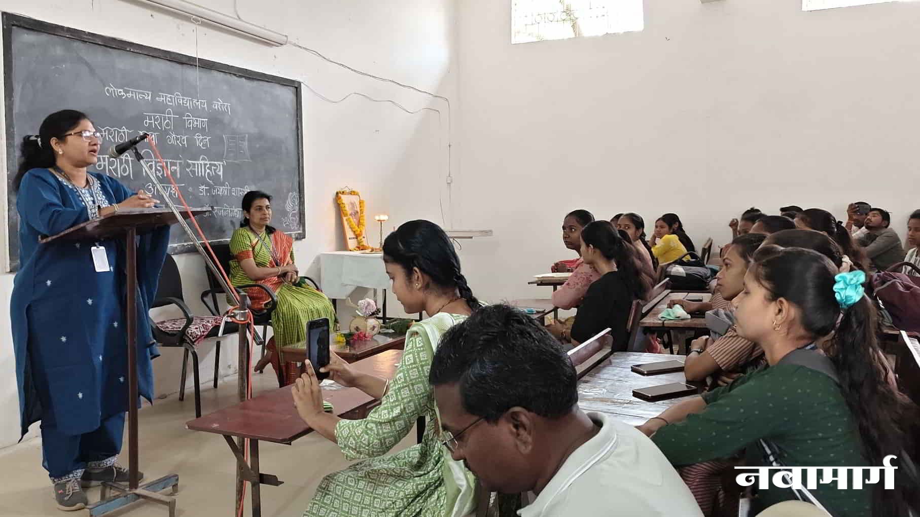 वरोरा : लोकमान्य महाविद्यालयात दि. २७ फेब्रुवारी रोजी ‘मराठी भाषा गौरव दिन’ आणि कवी विष्णू वामन शिरवाडकर उर्फ कुसुमाग्रज यांची जयंती मोठ्या उत्साहात साजरी करण्यात आली. या कार्यक्रमाच्या अध्यक्षस्थानी महाविद्यालयाच्या प्राचार्य तथा मराठी विभाग प्रमुख डॉ. जयश्री शास्त्री होत्या, तर प्रमुख वक्त्या म्हणून मराठी विभागाच्या प्रा. डॉ. रजनीगंधा खिरटकर उपस्थित होत्या.