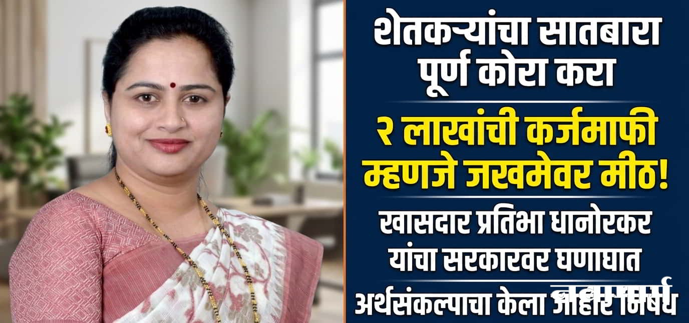 चंद्रपूर : महायुती सरकारने नुकताच मांडलेला अर्थसंकल्प म्हणजे केवळ आकड्यांची जादुगिरी आणि घोषणांचा पाऊस असल्याची तिखट प्रतिक्रिया चंद्रपूर-वणी-आर्णी लोकसभा क्षेत्राच्या खासदार प्रतिभा धानोरकर यांनी दिली आहे. सरकारने जाहीर केलेली २ लाखांची कर्जमाफीची मर्यादा म्हणजे बळीराजाच्या दुःखावर मीठ चोळण्याचा निंदनीय प्रकार असल्याची टीका त्यांनी केली आहे.