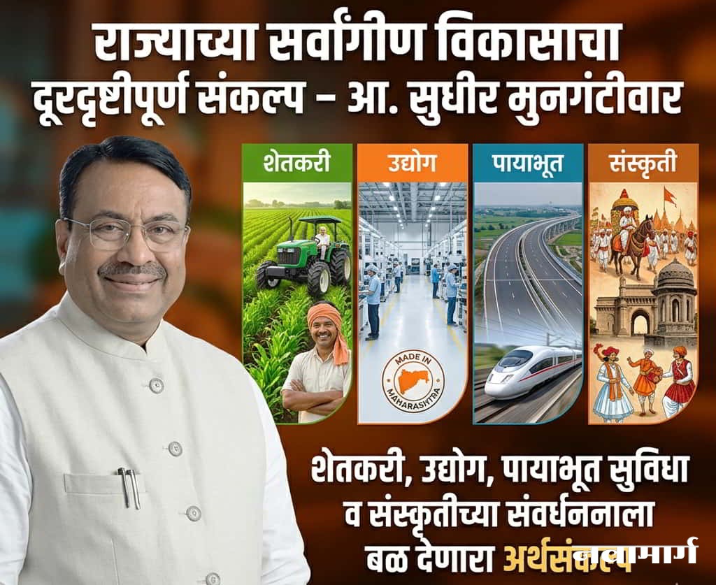 चंद्रपुर : महाराष्ट्राचे मुख्यमंत्री देवेंद्र फडणवीस यांनी आज विधानसभेत सादर केलेला राज्याचा अर्थसंकल्प हा सर्वसमावेशक, विकासाभिमुख आणि राज्याच्या सर्वांगीण प्रगतीचा मार्ग प्रशस्त करणारा असल्याची प्रतिक्रिया माजी अर्थमंत्री आमदार सुधीर मुनगंटीवार यांनी व्यक्त केले आहे. शेतकरी, उद्योग, पायाभूत सुविधा, रोजगार, पर्यावरण आणि सांस्कृतिक वारसा या सर्व क्षेत्रांचा समतोल विचार करून सादर करण्यात आलेला हा अर्थसंकल्प राज्याला विकासाच्या नव्या उंचीवर नेणारा ठरेल, असा विश्वास त्यांनी व्यक्त केला. पंतप्रधान नरेंद्र मोदी यांच्या सबका साथ, सबका विकास, सबका विश्वास या धोरणाचे प्रतिबिंब या अर्थसंकल्पात असल्याचे आ. मुनगंटीवार यांनी म्हटले आहे.