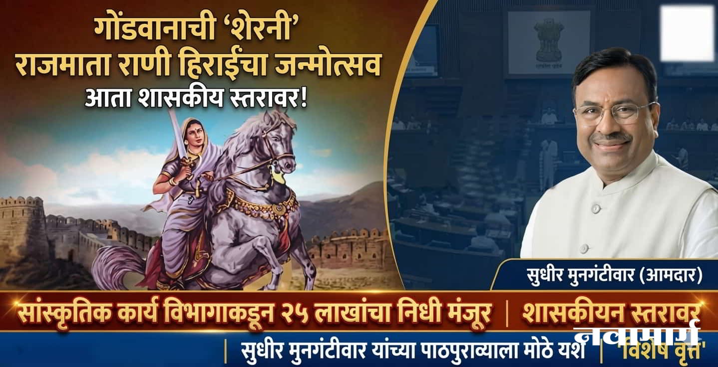 चंद्रपूर : चंद्रपूर शहराच्या इतिहासात अढळ स्थान असलेल्या आणि गोंडवानाच्या ‘शेरनी’ म्हणून ओळखल्या जाणाऱ्या राजमाता राणी हिराई यांचा जन्मोत्सव आता चंद्रपुरात शासकीय स्तरावर अत्यंत दिमाखात साजरा होणार आहे. राज्याचे माजी वने, सांस्कृतिक कार्य व मत्स्यव्यवसाय मंत्री आमदार सुधीर मुनगंटीवार यांच्या सातत्यपूर्ण पाठपुराव्यामुळे हे मोठे यश मिळाले असून, राज्य शासनाने या उत्सवासाठी २५ लक्ष रुपयांचा निधी मंजूर केला आहे.