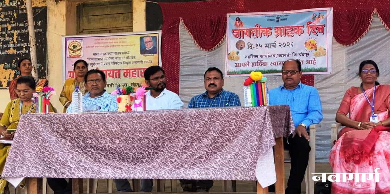 भद्रावती : जिल्हा परिषद तथा कनिष्ठ विज्ञान महाविद्यालय, भद्रावती येथे ‘जागतिक ग्राहक दिन’ मोठ्या उत्साहात साजरा करण्यात आला. ग्राहक पंचायत महाराष्ट्र (शाखा भद्रावती) आणि तहसील कार्यालय, भद्रावती यांच्या संयुक्त विद्यमाने या कार्यक्रमाचे आयोजन करून विद्यार्थ्यांमध्ये ग्राहक हक्क, जबाबदाऱ्या आणि ग्राहक संरक्षणाबाबत व्यापक जनजागृती करण्यात आली.