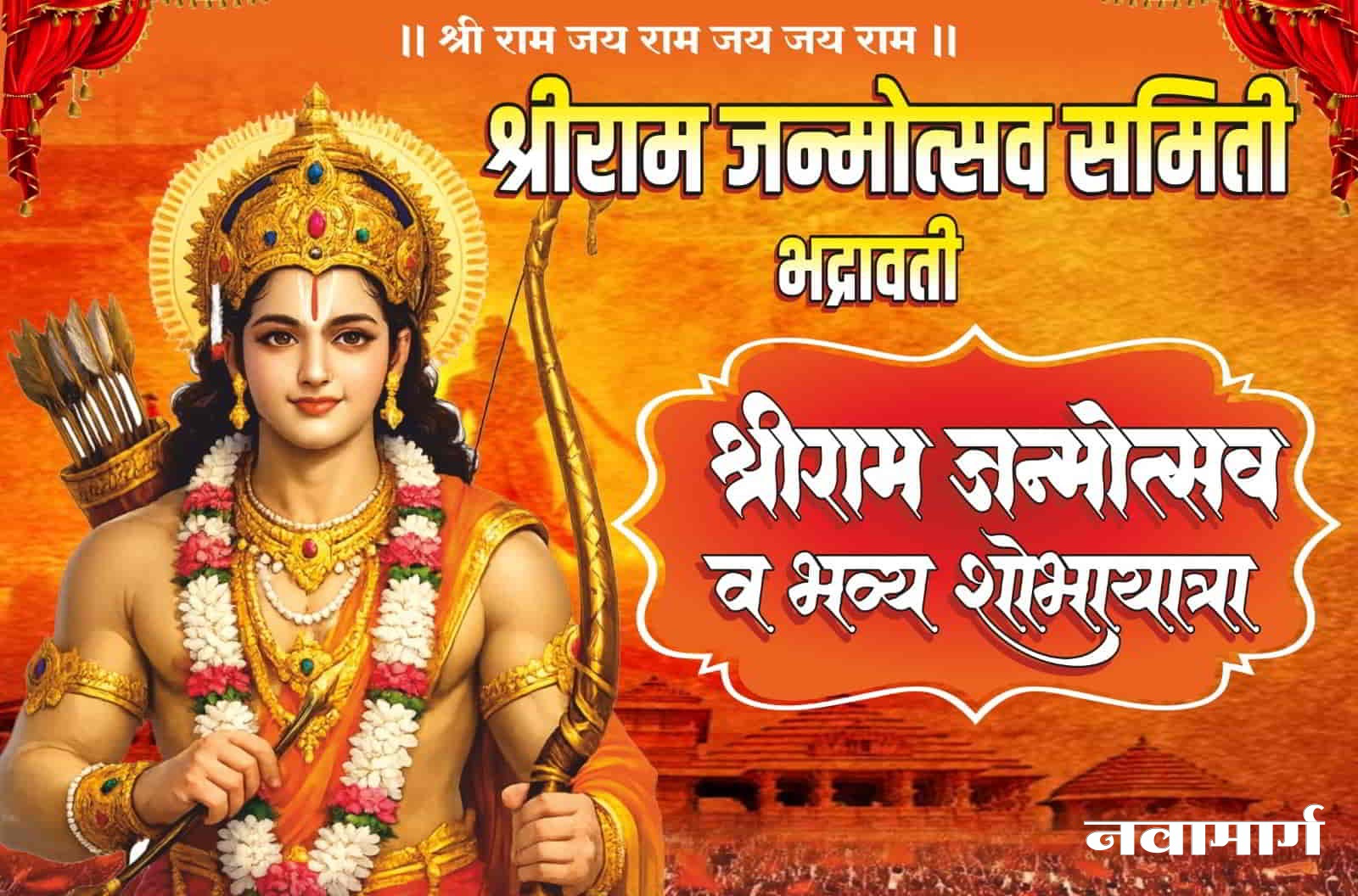 भद्रावती : श्रीराम जन्मोत्सव समिती, भद्रावतीच्या वतीने यावर्षी श्रीराम जन्मोत्सवाचे औचित्य साधून २५ आणि २६ मार्च २०२६ रोजी शहरात विविध धार्मिक कार्यक्रम आणि प्रभू रामचंद्रांच्या भव्य शोभायात्रेचे आयोजन करण्यात आले आहे. या महोत्सवात हजारो रामभक्त सहभागी होणार असून प्रशासकीय व राजकीय क्षेत्रातील मान्यवरांची विशेष उपस्थिती लाभणार आहे.