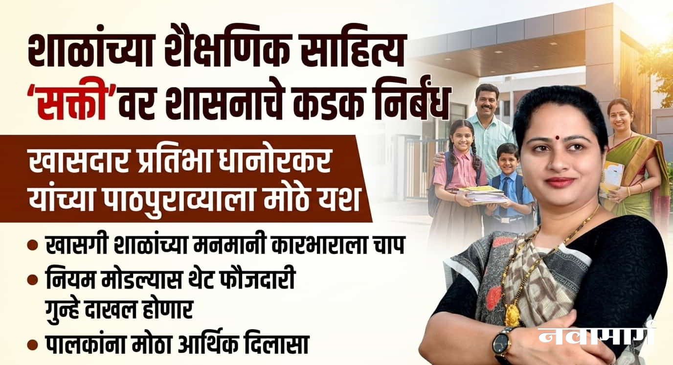 चंद्रपूर : राज्यातील खासगी शाळांकडून पालकांना विशिष्ट दुकानातूनच महागडे गणवेश आणि शैक्षणिक साहित्य खरेदी करण्याची सक्ती केली जात असल्याच्या गंभीर प्रकरणाची राज्य शासनाने दखल घेतली आहे. चंद्रपूरच्या खासदार प्रतिभा धानोरकर यांनी या संदर्भात मुख्यमंत्री आणि शिक्षण मंत्र्यांकडे सातत्यपूर्ण पाठपुरावा केला होता. त्यांच्या या प्रयत्नांना मोठे यश आले असून, शिक्षण संचालनालयाने आता सर्व शाळांसाठी अत्यंत कडक नियमावली जाहीर केली आहे. यामुळे शाळांच्या मनमानी नफेखोरीला चाप बसणार असून पालकांची होणारी आर्थिक पिळवणूक थांबणार आहे.
